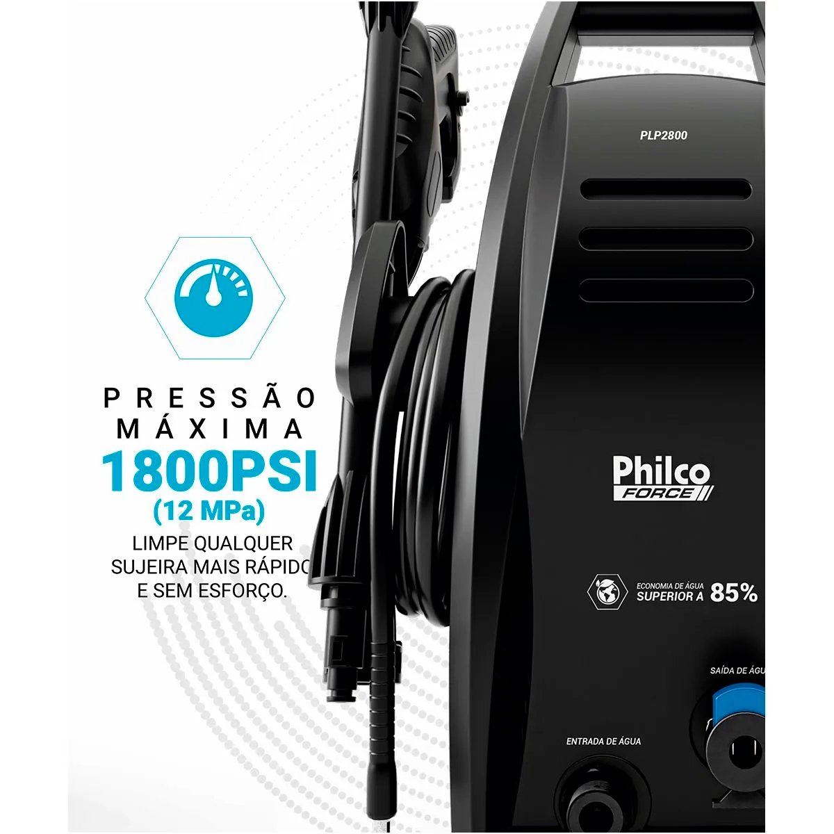 A Lavadora de Alta Pressão 1800psi Philco Force PLP2800 1600W chega para revolucionar seu dia a dia, com potência máxima de 1800psi e 1600W de desempenho, garante força e precisão para eliminar até as sujeiras mais resistentes.