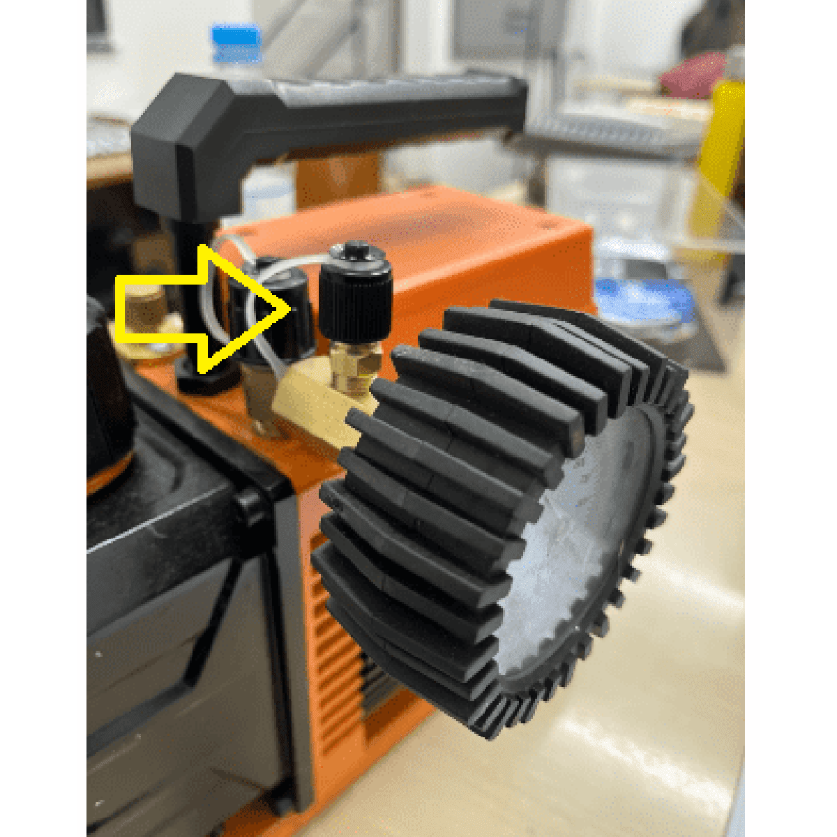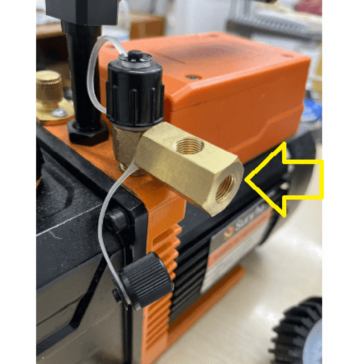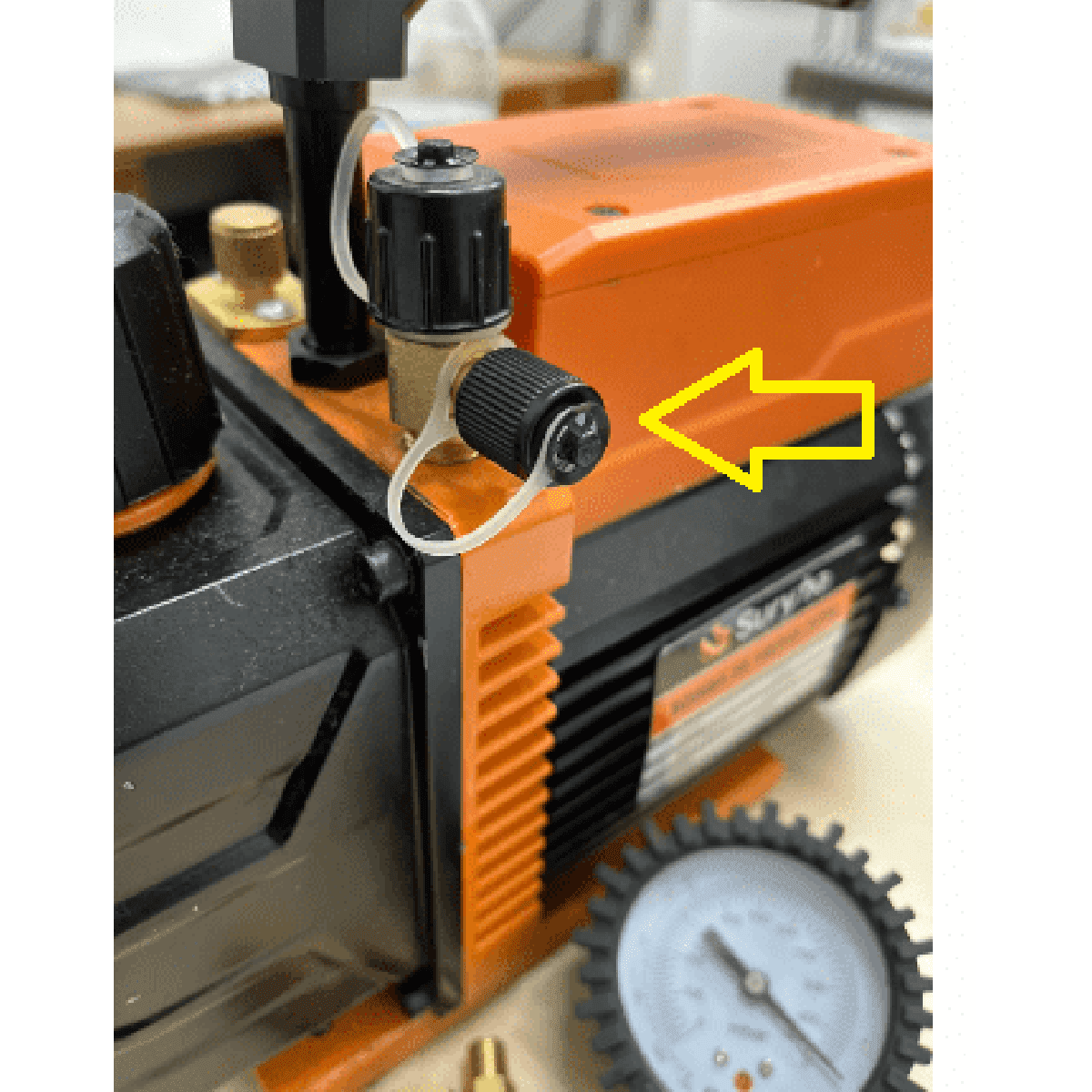 Remova a tampa de 1/4" do nípel de sucção da bomba de vácuo;
