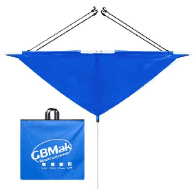 gramatura de 400g, estrutura de alumínio com proteção de parede emborrachada, e ilhóses também em alumínio.