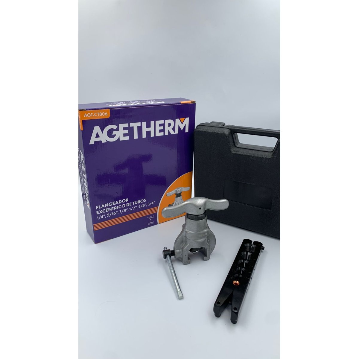 O flangeador de tubos ageTherm é utilizado para dar formas as extremidades dos tubos. O processo de flangeamento permite vedação completa na união de tubulações, válvulas e registros por meio de uso de porcas. É uma ferramenta indispensável na mala do técnico refrigerista.