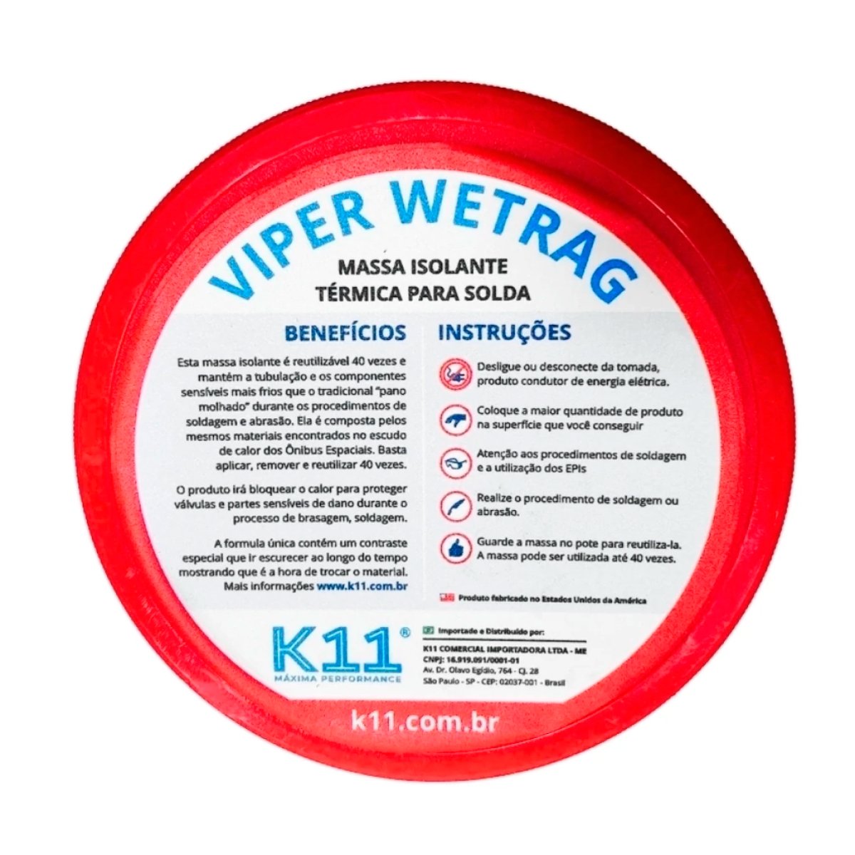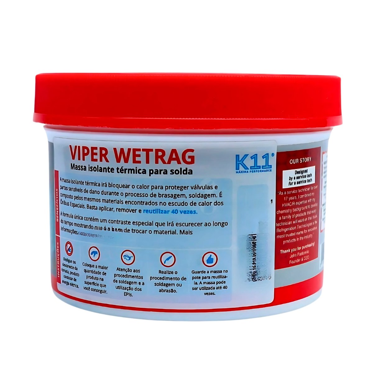 A Massa Isolante Térmica – VIPER WETRAG® é produzida com os mesmos materiais do escudo térmico do ônibus espacial americano, o que a torna segura, eficaz e reutilizável por até 40 vezes. Sua tinta desbota conforme o produto se desgasta, proporcionando uma indicação clara do momento de descarte.