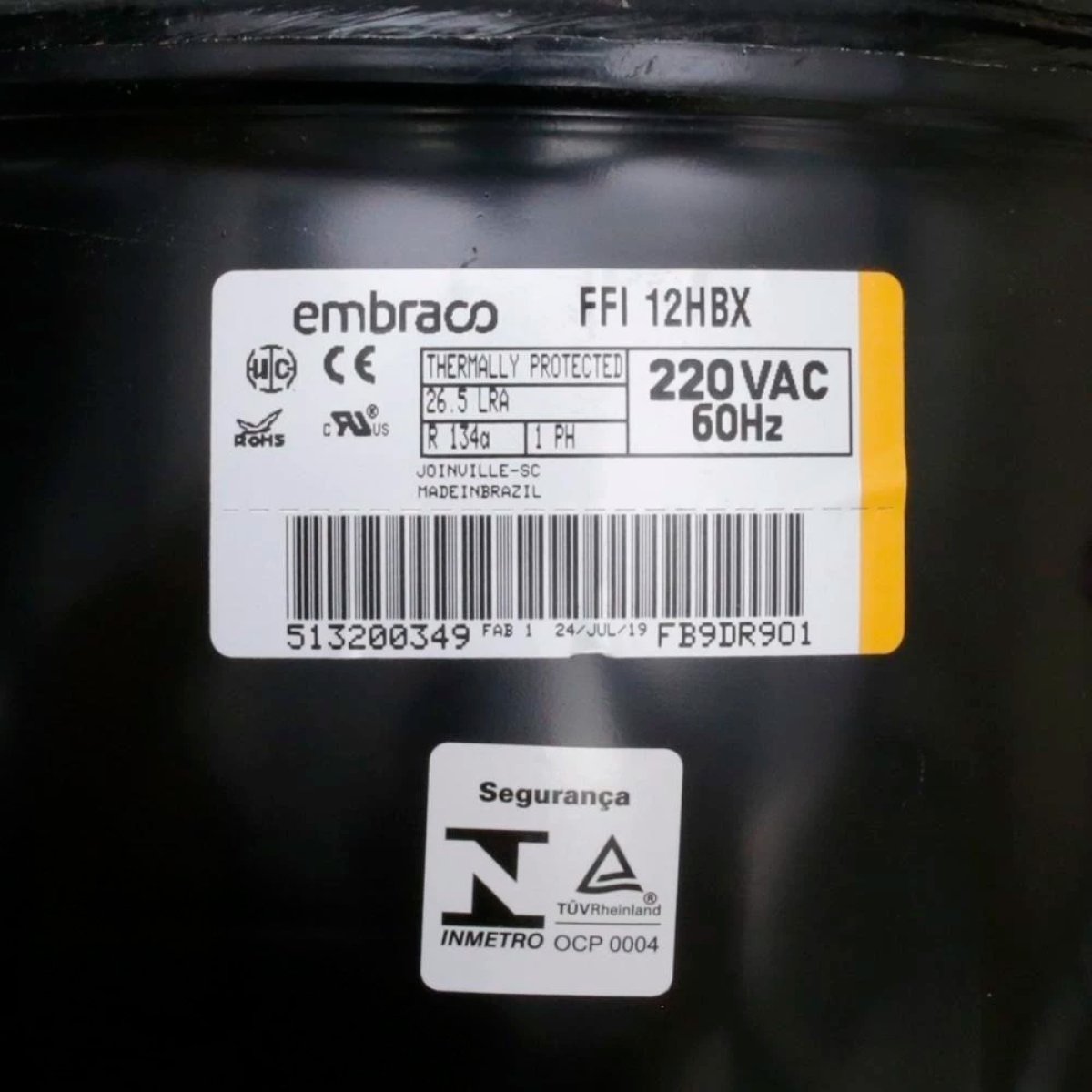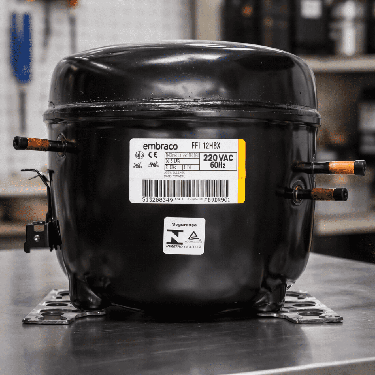 Compressor Embraco FFI 12HBX 220V – Alta eficiência e confiabilidade para refrigeração.