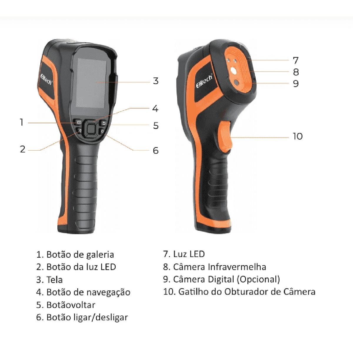 - Detector infravermelho portátil Elitech. A Câmera Térmica TIC-270 foi desenvolvida para acompanhar a rotina intensa de serviço. Leve e fácil de manusear, ela pode ser operada com apenas uma mão, facilitando inspeções em áreas de difícil acesso. Seu design ergonômico garante resistência mesmo em ambientes mais exigentes, com proteção IP54 contra poeira e respingos de água.