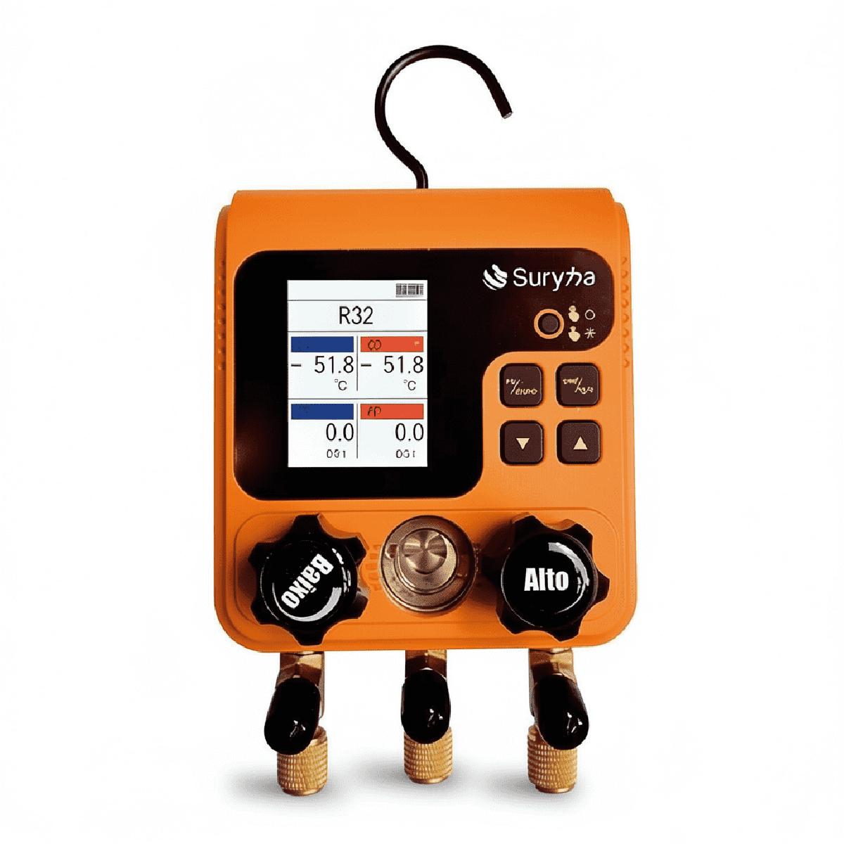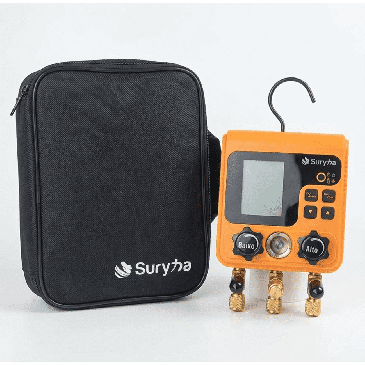 O Manifold Digital Smart Suryha traz tecnologia e confiança para o técnico que busca cada vez mais qualificar seu trabalho. Com uma tela de LCD colorida com informações em português de fácil acesso ao usuário. Além de ser super resistente e compacto, o Manifold Digital Smart, faz testes de pressão dupla, percentual de vácuo em tempo real, teste de estanqueidade. Os e valores de pressão fornecem uma base confiável para avaliar o status operacional dos sistemas de refrigeração.